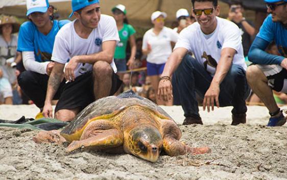 La tortuga Caguama (Caretta caretta) ha sido protegida durante 18 años por el Programa de Conservación de Tortugas y Mamíferos Marinos de Utadeo Santa Marta, liderado por la profesora Aminta Jáuregui.