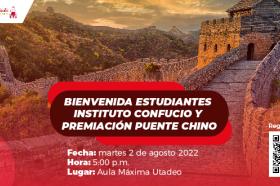 El próximo martes 2 de agosto de 2022 se llevará a cabo la ceremonia de bienvenida a los estudiantes del Instituto Confucio y premiación de Puente Chino 2021 y 2022.