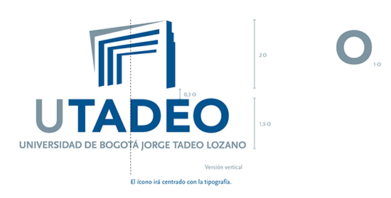 La proporción de distancia entre el ícono y la tipografía es un tercio del alto de la letra “O” de la palabra UTADEO. El ícono irá alineado a la esquina superior izquierda del asta de la letra “D”.