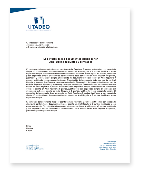 Tipo de letra para hacer los comunicados: Arial Regular.