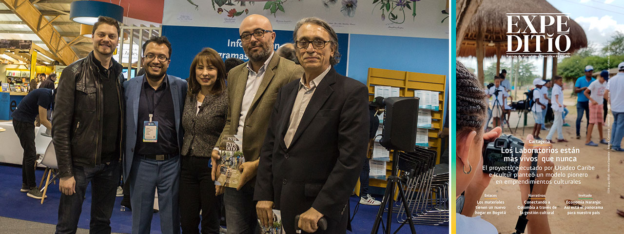 La más reciente edición impresa de Expeditio, publicación de periodismo científico de Utadeo, aborda los ejercicios de investigación creación más destacados en el ámbito de las economías creativa, circular y naranja. En el conversatorio de lanzamiento, que se llevó a cabo el 30 de abril, en el marco de la Feria del Libro de Bogotá, bajo la moderación del guionista y escritor Juan Camilo Jaramillo, Santiago Trujillo (director de los programas de Cine y Televisión y de la Maestría en Gestión Cultural y Audiovisual de Utadeo), y Carlos Francisco Pabón (director de la Escuela de Diseño, Fotografía y Realización Audiovisual de nuestra Universidad) dialogaron en torno a las apuestas del país en cuanto a los emprendimientos culturales y la economía creativa, al tiempo que propusieron los retos que tiene la academia para continuar en el debate nacional sobre estas industrias.
