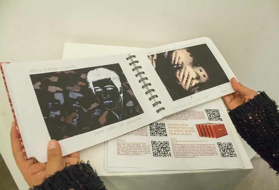 Laura Vega presentó la bio-instalación fotográfica "Colección Panóptico de la Educación para la Paz", la cual cuestiona cómo las imágenes sobre el proceso de paz en Colombia, que fueron replicadas por los medios de comunicación, aportaron a la educación para la paz.