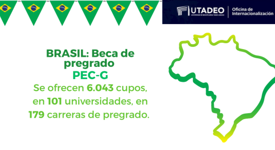 La Embajada de Brasil en Bogotá informa que están abiertas, del 7 de junio al 18 de agosto de 2023, las inscripciones al proceso selectivo del 2024 del Programa de Estudiantes-Convenio de Pregrado (PEC-G).