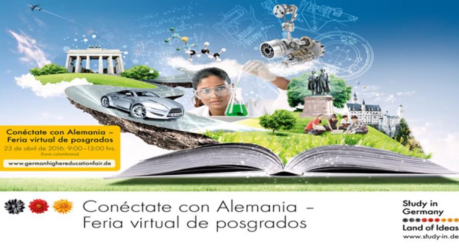 El DAAD se complace en anuciar que está organizando por primera vez en Colombia la Feria Virtual de Posgrados "Conéctate con Alemania". La feria se realizará el sábado 23 de abril de 2016 desde las 9:00 am hasta la 1:00 pm, hora colombiana. La participación en la Feria Virtual es gratuita, y únicamente hay que registrarse en este enlace: www.germanhighereducationfair.de