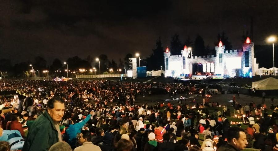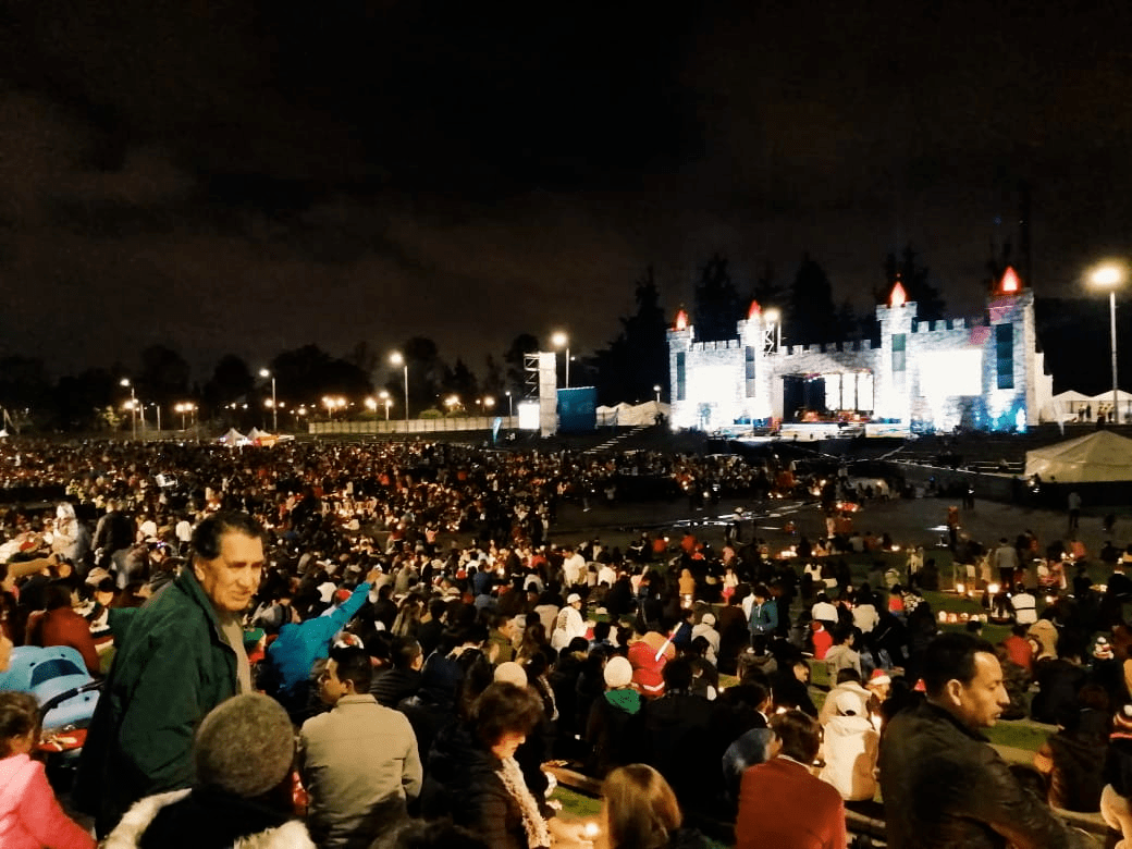 El frío, una vez protagonista, pasó a segundo plano cuando el ritmo de la música y el sonido conjunto de las risas hicieron presencia. Por la entrada a la plazoleta se encontraban carpas llenas de velas esperando ser regaladas y encendidas, para así unirse a la festividad. Gorros navideños, globos con colores y niños saltando por todos lados iluminaban el lugar, un gran castillo daba la bienvenida a todo aquel que llegaba e iba buscando un espacio en medio de las escaleras llenas de sonrisas, luces y colores.