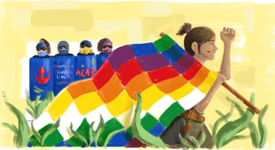 “Hoy se va mi padre, solo era un guardia y lo mataron”, así me contó Gina Guejia, indígena Nasa del resguardo Las Mercedes, en días pasados. Ermiliano Chocue, su mentor y padre, miembro de la guardia indígena de resguardo Chimborazo en Morales, Cauca, fue asesinado brutalmente cuando estaba haciendo control territorial en el municipio para erradicar un sembradío de coca. Por el teléfono no puedo ver su pesar, pero está destrozada. Las letras le salen mezcladas por los nervios y me repite varias veces: “Solo queremos justicia”. Como ella, cientos y miles de indígenas llegaron a Bogotá en los últimos días para exigirle al Gobierno que pare el genocidio. Aunque vienen cargados del dolor por la ausencia de los suyos, gritan en el corazón de la Plaza de Bolívar “¡Fuerza, fuerza, fuerza!”.