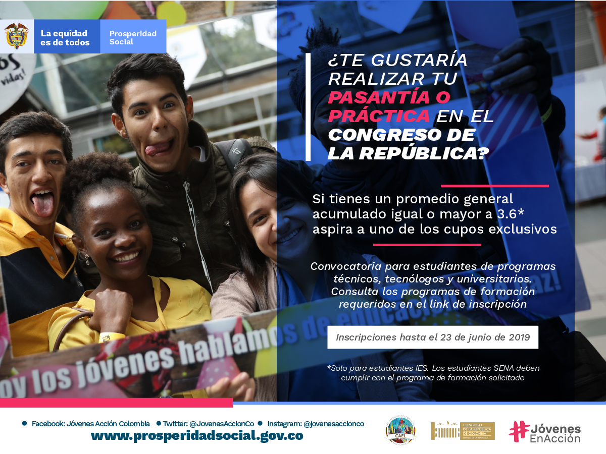 Los documentos deberán remitirse al siguiente correo con fecha límite del 23 de junio 2019:Jovenesenaccionregional@prosperidadsocial.gov.co