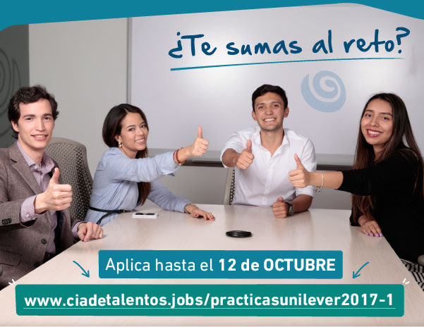 Como siempre es un placer contar con su participación en nuestras inscripciones para el Programa de Prácticas de Unilever Colombia – Unilever Leadership Internship Program , seguimos desarrollando los futuros líderes de la compañía con su apoyo . Inscripciones hasta el 12 de octubre.