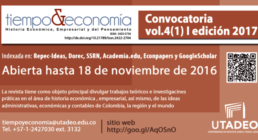 Tiempo&Economía, la única revista de historia económica del país, editada por la Facultad de Ciencias Económicas y Administrativas de Utadeo, abre su convocatoria para el primer número del 2017.