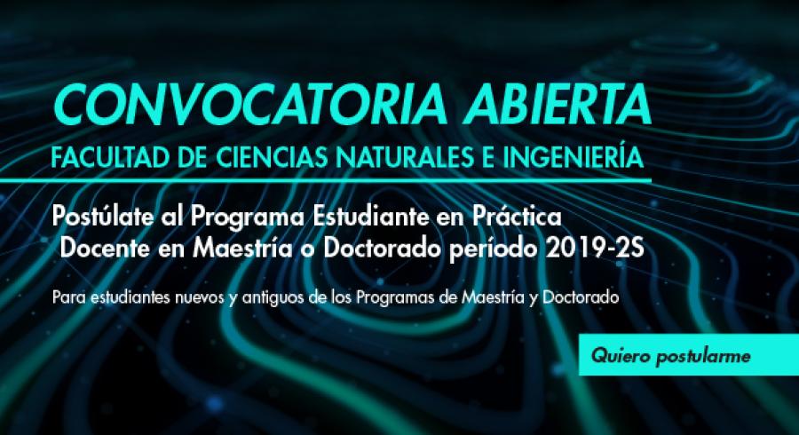 La Facultad de Ciencias Naturales e Ingeniería, abre convocatoria a estudiantes nuevos y antiguos, para postularse al programa de Estudiante en Práctica Docente en Maestría o Doctorado, para el período académico 2019-2S.