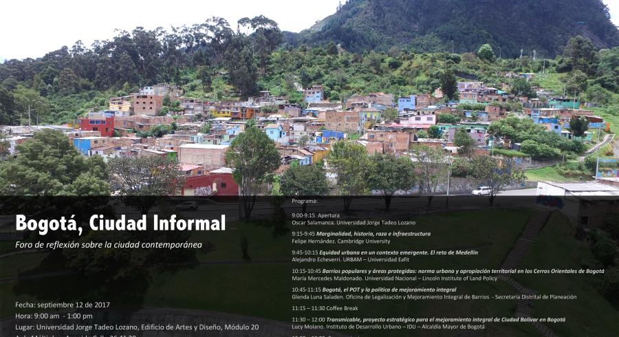 El programa de Arquitectura de la Escuela de Arquitectura y Hábitat extienden la invitación a la comunidad académica al foro: Bogotá, Ciudad informal / Foro de reflexión sobre la ciudad contemporánea que se ralizará el próximo 12 se Septiembre de 2017.