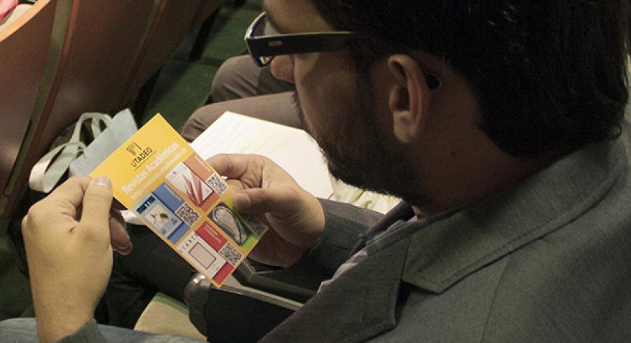 - Uno de los asistentes del 5 Congreso de Economía Colombiana consulta información sobre las revistas de Utadeo.
