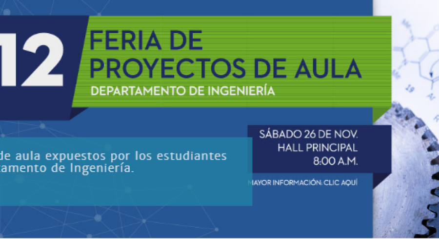 El próximo 26 de noviembre, desde las 8:00 a.m., en el Hall Principal, se realizará la “12ª Feria de Proyectos de Aula de los programas adscritos a la facultad de Ingeniería (Ingeniería Química, Ingeniería de Alimentos, Ingeniería de Sistemas, Ingeniería en Automatización, Ingeniería Industrial). Los estudiantes de los proyectos seleccionados podrán inscribirse máximo hasta el día 13 de noviembre a las 5:00 p.m.