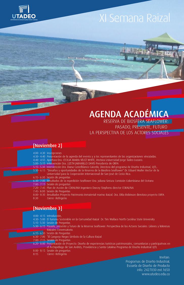 El Programa de Diseño Industrial y la Escuela de Diseño de Producto de la Universidad Jorge Tadeo Lozano invitan a las  Jornadas Académicas de la Semana Raizal liderado por la Organización de Raizales fuera del Archipiélago (ORFA), en el marco de la XI Semana Raizal.
