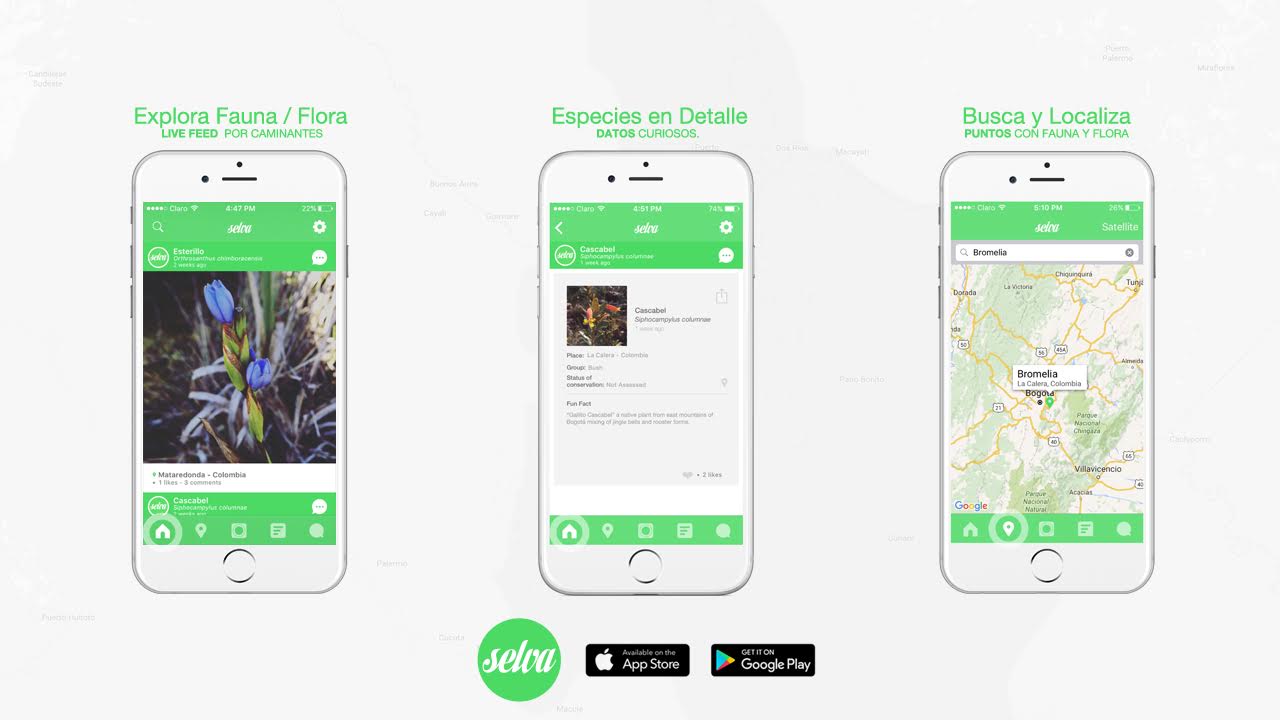 Selva App nació en el 2015, año en el que algunas organizaciones de conservación ambiental plantearon a los hermanos tadeístas, Felipe y Diego Ávila, la necesidad de diseñar una aplicación sobre biodiversidad continental. Sin embargo, esta dupla de publicista y biólogo marino, respectivamente, ya había trabajado en soluciones para dispositivos móviles que contribuyeran a la conservación de la biodiversidad en nuestro país. En el año 2014 crearon Seak, aplicativo que compila las fotografías enviadas por los usuarios sobre especies marinas. El emprendimiento representó a Colombia en el Mobile World Congress que se llevó a cabo en Barcelona, el cual reunió a start up de diferentes países.