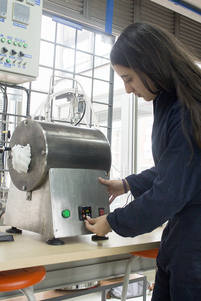Posteriormente, los investigadores realizan una caracterización o evaluación del material obtenido en el Laboratorio de Alta Presión y Reacciones Químicas del CIPI de Utadeo, con el fin de establecer su desempeño como adsorbentes de contaminantes. Este proceso se lleva a cabo utilizando aguas sintéticas.