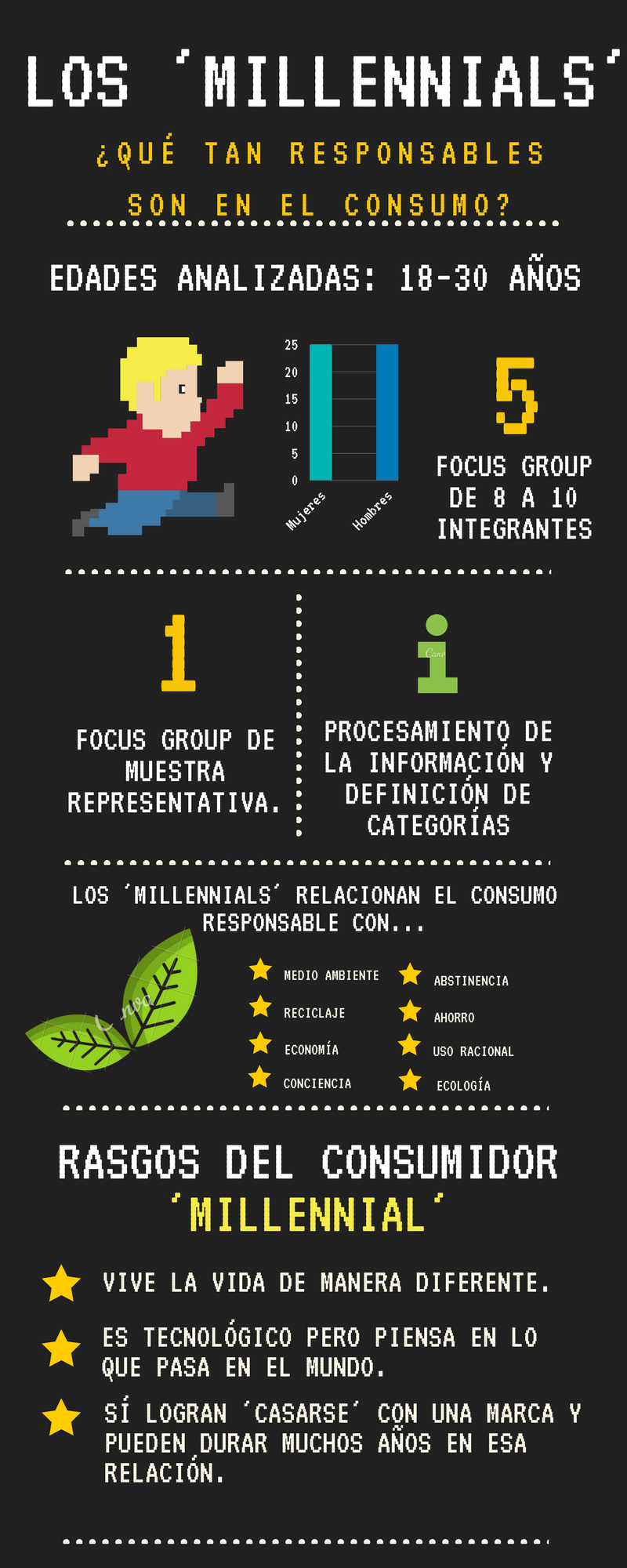 Las profesoras de la Escuela de Administración, Contaduría y Mercadeo de Utadeo, Mónica Eugenia Peñalosa y Diana López Celis, y los estudiantes del Semillero de Investigación en Consumo Responsable (CONRES), Tatiana Almonacid y Daniel Felipe Enciso, se dieron a la tarea de indagar sobre los rasgos de consumo de los jóvenes de esta generación en la ciudad de Bogotá, especialmente las actitudes de aquellos entre los 18 y 30 años de edad, pertenecientes a estratos 3 y 4.