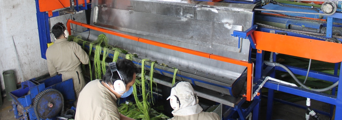 Uno de los aspectos más interesantes de Fiqueña es que modifica profundamente los esquemas de producción de la cadena del fique, haciéndolos más eficientes y sostenibles. Esto lo hace a través del Centro de Beneficio donde opera la máquina, definida como una unidad productiva solidaria para el aprovechamiento integral de la hoja, bajo una visión empresarial y comunitaria.
