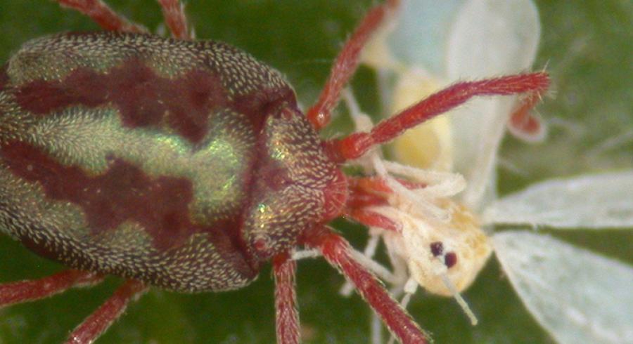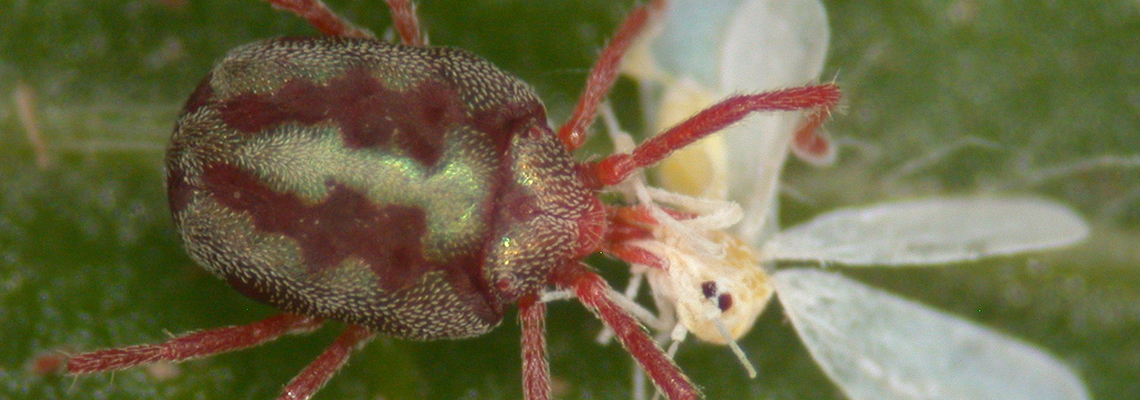 En fotografías: Balaustium leanderi depredando a una mosca blanca - Evaluación de presencia de plagas en cultivos de rosas