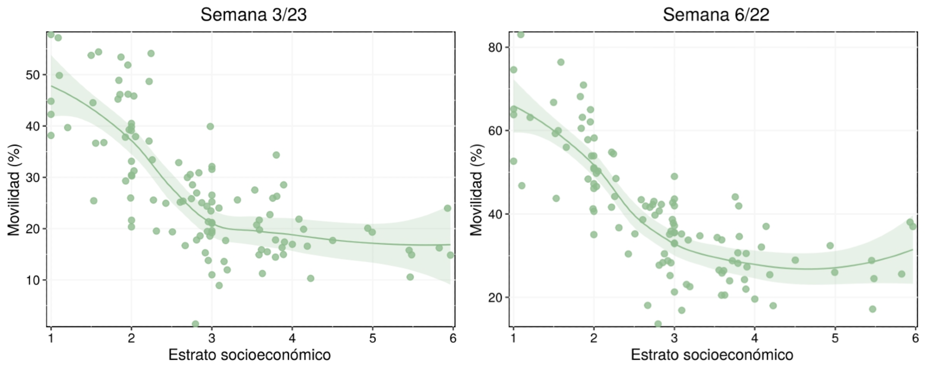 Para los investigadores, la reducción de la movilidad esconde situaciones aún más complejas que están relacionadas con la capacidad de la población para responder al confinamiento, a las medidas de restricción de la movilidad y al distanciamiento social en un país de ingresos medios con altos niveles de desigualdad. De ahí que en la indagación se evidencie que los cambios en la movilidad están fuertemente asociados con las condiciones socioeconómicas de la población.