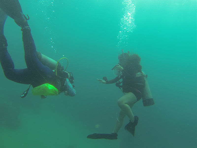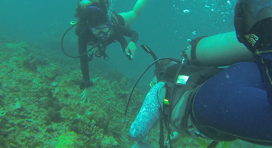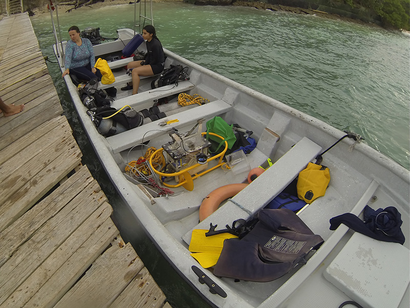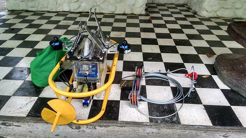 Por su parte, fruto del trabajo de campo llevado a cabo por algunos profesores y estudiantes del programa de Biología Marina, la profesora Alvarado y los profesores Álvarez y Vásquez vieron la necesidad de crear un dispositivo robótico para la captura de imágenes de arrecifes de coral, mediante la técnica de muestreo conocida como transecto de banda, que consiste en el lanzamiento de una cadena o cinta métrica de una longitud específica, la cual es replicada a unos tres o cuatro metros de distancia, y posteriormente, lanzadas otras dos réplicas, a modo de contramuestra.