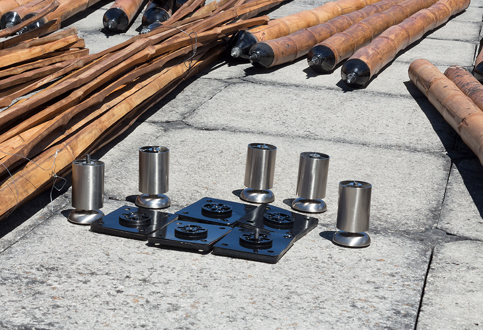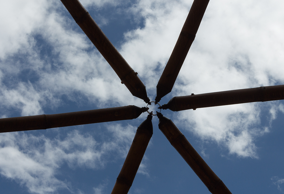 La propuesta de Benavides, en cambio, permite que la guadua sea utilizada como muro y cubierta en una construcción a través de anillos en los que se anclan las uniones, y así hacer estructuras auto-tensionadas, tal cual como sucedió en el domo que Tadeo Lab desarrolló en agosto de 2016, compuesto por 250 piezas, 500 uniones de botella pet y noventa aros circulares.