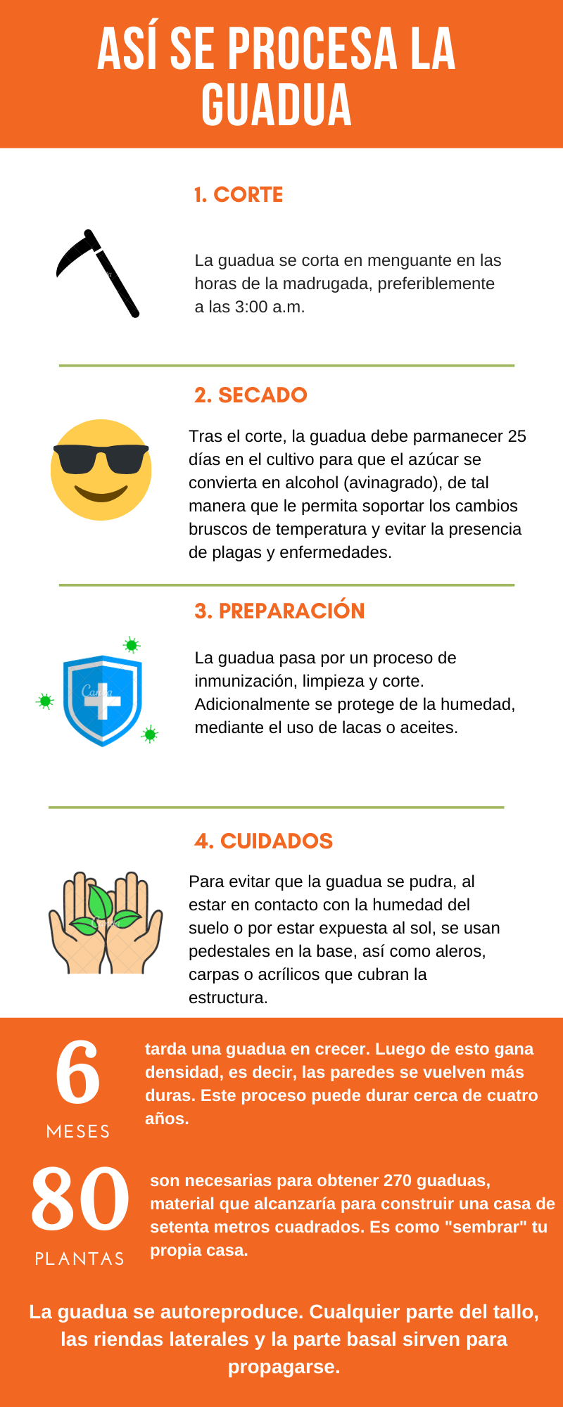 Además tiene una ventaja única: es liviana, flexible, pero ante todo, es una de las gramíneas (pastos) de más rápido crecimiento, razón por la que, a diferencia de las maderas de los árboles, estas no se talan sino se podan, dejando bajo tierra las raíces para que nuevamente vuelva a crecer.
