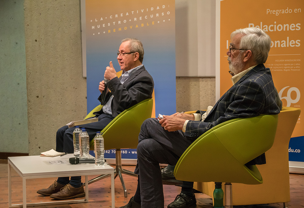 Doscientos años después de la gesta libertadora que selló la independencia de Colombia, el 7 de agosto de 1819, son varios los interrogantes que enfrenta el país en torno a temas como la inclusión social, el crecimiento económico y el cese del conflicto armado. En Utadeo, de la mano del reconocido historiador y ex decano de la Facultad de Ciencias Sociales, Orlando Melo, y del profesor emérito de la institución, Salomón Kalmanovitz, se brindó un panorama de lo que hemos sido, somos y seremos como Nación. El conversatorio fue moderado por José David Moreno, profesor del Departamento de Ciencia Política y Relaciones Internacionales.