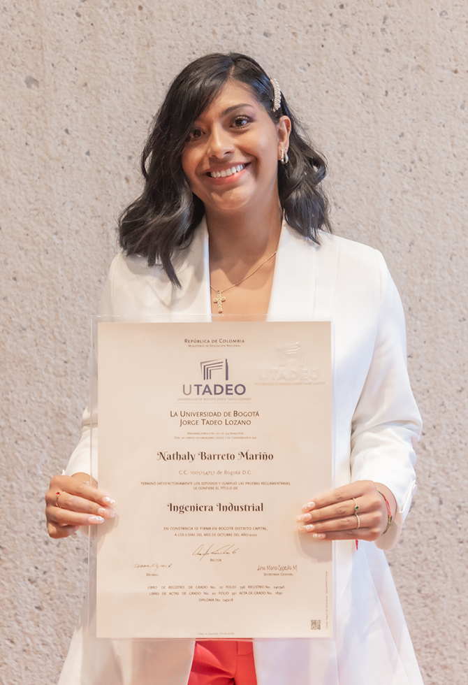 Nathaly Barreto, resalta que este es un gran logro, a pesar de vivir unos semestres desde la virtualidad a raíz de la pandemia. “Esta universidad me ayudó, me apoyó en la culminación de mi carrera y me ofrece la especialización que quiero realizar. Estoy muy feliz por este logro”.