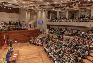 En la instalación de esta ceremonia de grado, Carlos Sánchez Gaitán, rector de Utadeo, resaltó los compromisos individuales y colectivos para asegurar la sostenibilidad y el equilibrio del lugar que habitamos. “El panorama es exigente y nos invita a ser disruptivos, creativos y dialogantes; nos convoca a estar en permanente actualización de nuestros conocimientos y a poner a prueba nuestro saber; pero también y, esencialmente, a reconocer que esto demanda de cada uno de nosotros, apalancar las prácticas individuales con las colectivas y comprender que la dinámica del mundo está en plena interacción entre las ciencias naturales, económicas, sociales, artísticas y estéticas que marcarán la diferencia en la manera de habitar el mundo”.