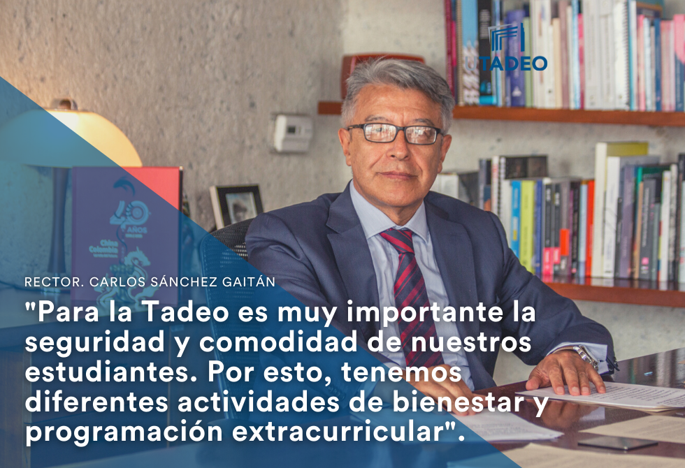 Sánchez también subrayó que la Tadeo es una institución que ofrece actividades de bienestar a sus estudiantes, así como una completa agenda extracurricular, que comprende eventos culturales, deportivos y artísticos, entre otros. Asimismo, destacó que el sello de la Universidad se caracteriza por la diversidad y el respeto por las diferencias, sin importar la orientación sexual, raza, religión o estrato socioeconómico.