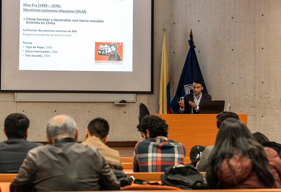 El Departamento de Ciencia Política y Relaciones Internacionales junto al Observatorio Virtual Asia Pacífico-OVAP de Utadeo invitaron al sinólogo Andrés Bórquez, coordinador del programa de Estudios Chinos del Instituto de Estudios Internacionales de la Universidad de Chile, para hacer una revisión de las teorías de las relaciones internacionales chinas, y los debates teóricos chinos actuales (liderazgo facilitador -vs- China Gran Nación).