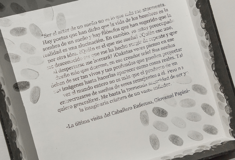 "Lo que hice fue ilustrar frases que llamaron mi atención y que hablara del poder de las palabras y de cómo nosotros ejercemos ese poder frente a otras personas por medio de las ilustraciones. Los objetos giran en torno a una conceptualización del proyecto: las palabras escritas, las palabras embotelladas", explica de su proyecto.