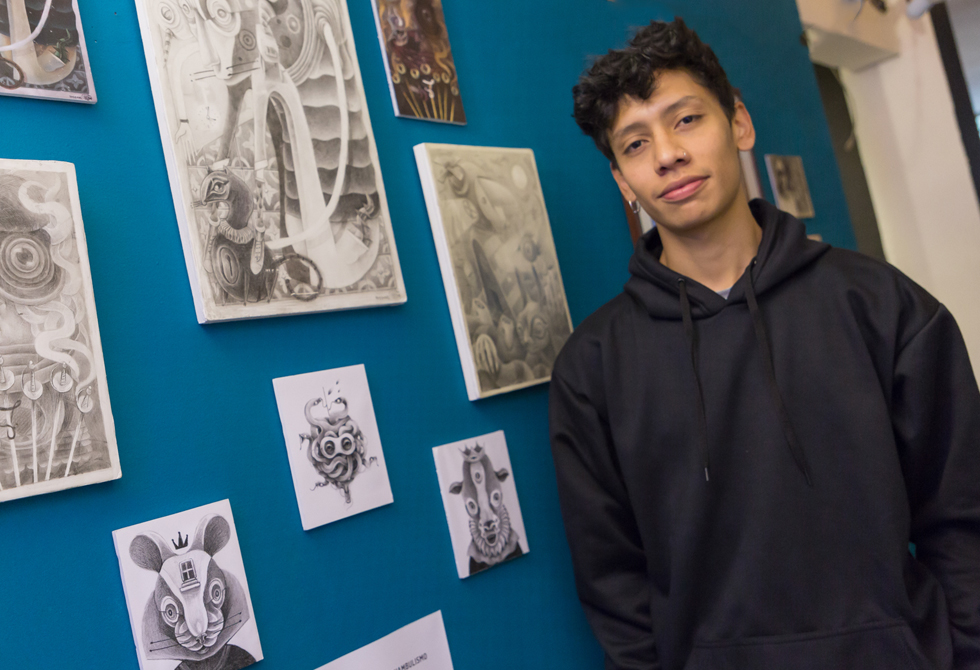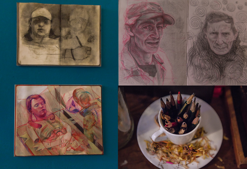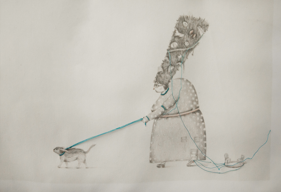 Sus ilustraciones son hechas con lápiz de grafito.