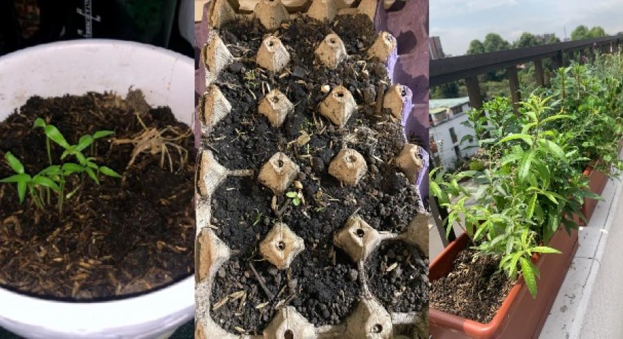 Algunos de los estudiantes fueron más allá de la siembra y lograron llevar a cabo compostaje. María Camila Jiménez, estudiante de Biología Marina, hizo una composta con la tierra floral de su jardín, colocando residuos de cáscaras y hojas secas. De igual forma, durante varias semanas, recolectó lombrices e hizo una pequeña investigación aplicando diferentes fertilizantes que compró para abonar cada cultivo que tenía, dependiendo las necesidades de la planta. Ello le permitió tener unos primeros brotes de mora y manzanilla, tras varios intentos, gracias al uso de humus de lombriz; también tuvo plantación de ajos, que fertilizó con gallinaza (abono a base de excremento de gallinas).