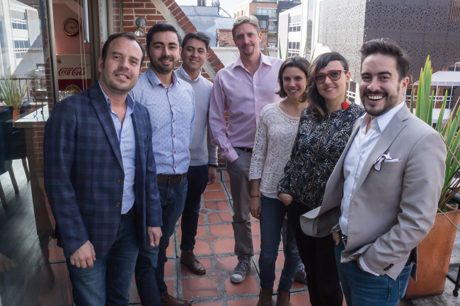 Felipe (izquierda), junto a su socio José Carlos Álvarez (derecha), asesoran al grupo de speakers de TEDx Utadeo
