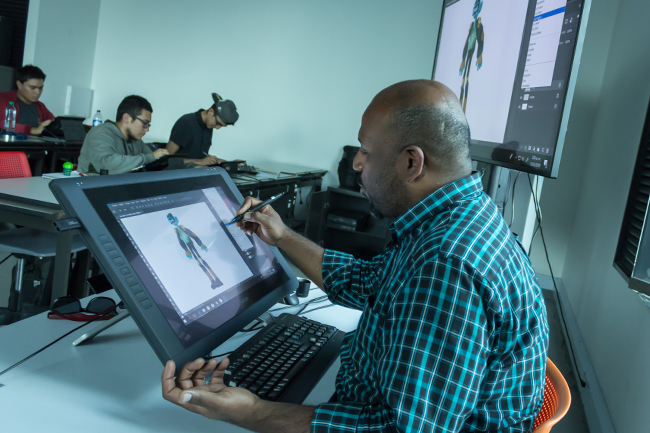 “Cuando se trabajan manchas en análogo, por ejemplo, un error es mucho más costoso. En cambio, en una Cintiq, si tú haces una mancha que no te gustó, solo es darle ‘ctrl+z’ y no se perdió nada. No tiene ningún problema. Puedes trabajar por layers, se pueden combinar colores, se pueden hacer secuencias, se puede mover el personaje, copiar y pegar y no se tiene que hacer otra vez desde cero. No hay que trabajar en temas de posrefinamiento sino que se trabaja en tiempo real con las cosas que van a quedar casi que definitivas”, afirma Alejandro Guzmán, profesor del programa de Realización en Animación.