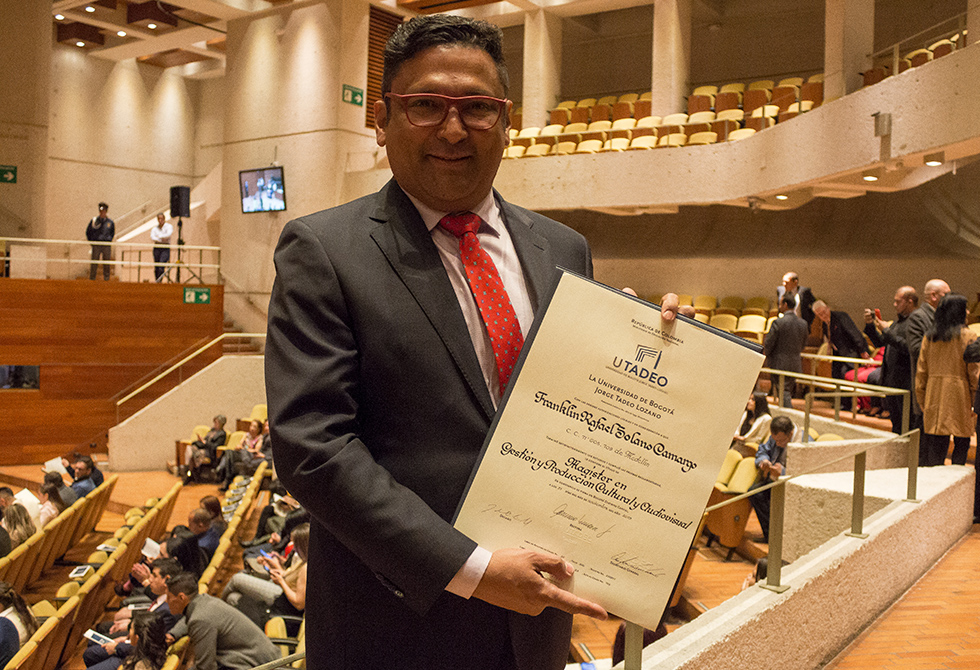 Como él, fueron 33 los tadeístas (9 especialista, 23 magísteres y un doctor) que obtuvieron su título de posgrado en la más reciente ceremonia de grados que se celebró en Utadeo el pasado 20 de noviembre, en el Auditorio Fabio Lozano.