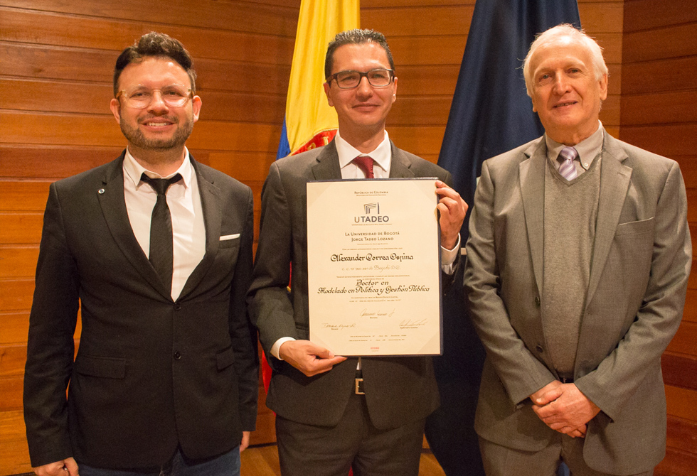 Alexander Correa Ospina también llegó para hacer historia en esta graduación, pues se convirtió en el primer doctor en Modelado en Política y Gestión Pública de Utadeo. Como lo manifiesta este economista de profesión, uno de los elementos que más llamó su atención para desarrollar este posgrado fue la integración en política pública sin olvidar el componente matemático. “Al país le hace mucha falta hacer política publica basada en evidencia cuantitativa con modelos y simulaciones que se puedan verificar”, agrega.
