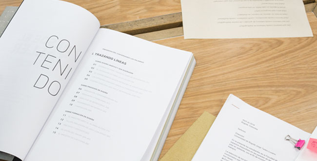 "El libro habla de 32 notas de diseño, en las que se acotaron todos los pensamientos sobre el tema. Lo que le da sentido y lo que nosotros queremos es un libro con el cual los estudiantes puedan interactuar, que les ayude para sus procesos de aprendizaje o para sus propuestas dentro y fuera de clase; lo mismo para que los profesores eventualmente lo usen para sus clases, pues tiene apartados donde aparecen postulados sobre el diseño gráfico, sobre lo que implica hacer clase y aparecen ejemplos donde esto se pone en juego".