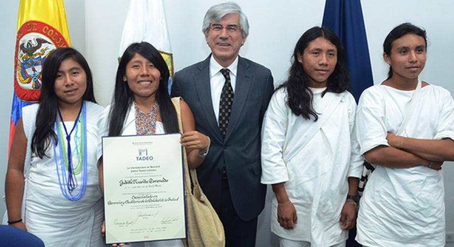 Tras un proceso de duelo que duró aproximadamente siete meses, Nuvita volvió a retomar sus estudios. Dos años después, ve el sueño de su esposo hecho realidad al graduarse como especialista, al tiempo que se ha convertido en un ejemplo para todas las “mungis” de su comunidad, así como una figura de admiración y respeto por parte de los hombres de la etnia: “yo estoy muy agradecida con la Universidad Jorge Tadeo Lozano, comenzando por quienes coordinan el programa. Cuando he tenido dificultades, ellos han estado pendiente de mí, al igual que todo el personal de la Universidad. En cuanto a los docentes, tenemos expertos en el área, quienes llegan a cada clase con la mente abierta a cada una de las preguntas que generamos. Hay temas que son difíciles de comprender, pero con la ayuda de los docentes, la academia se hace mucho más fácil”, resalta la tadeísta.