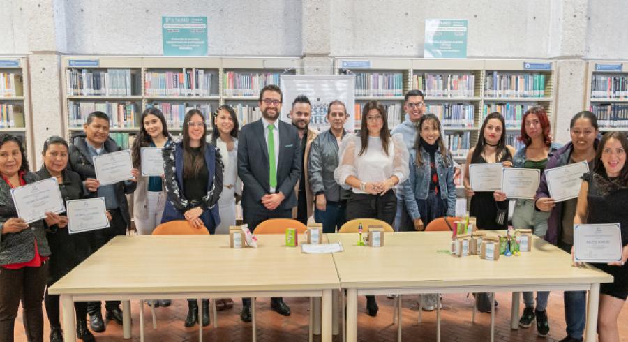 Fue una especie de graduación. Todos llegaron elegantes y con la felicidad de culminar sus estudios. La docente Diana Piedad Aldana fue quien entregó los certificados en una mesa en la que estaban Sergio Martínez de la Biblioteca y Kelly Montenegro de Presente Perfecto. Los aplausos, las lágrimas y abrazos se tomaron el momento entre las palabras del público.