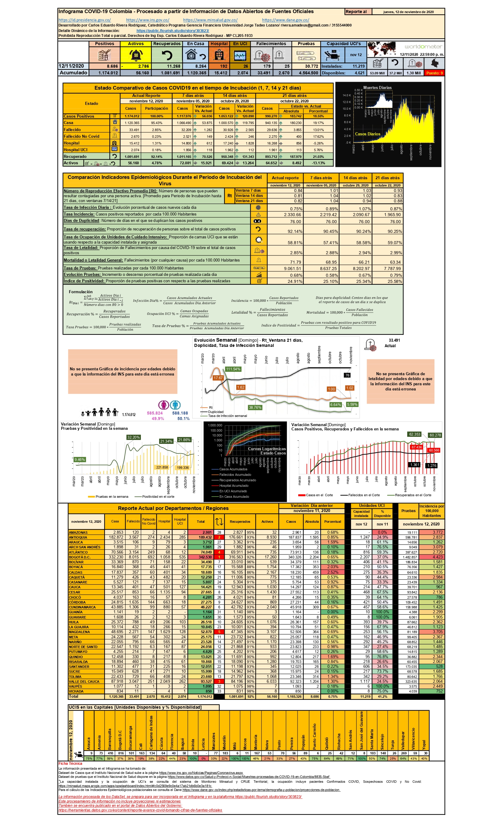 Terminado la segunda semana del mes de noviembre, el mundo superó los 53,1 millones de casos, con una recuperación del 90%, se tienen 37,2 millones personas que superaron el virus, pero desafortunadamente, con una letalidad del 2,45%, se superaron 1,3 millones de fallecimientos. Miremos cómo se comportó nuestro entorno con corte al 12 de noviembre.