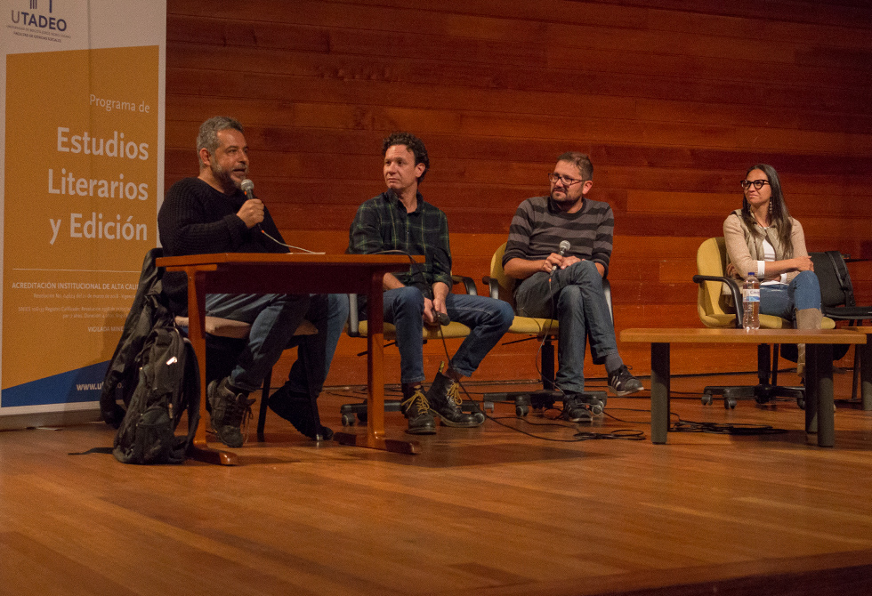 Mario Mendoza, Keco Olano, Carlos A. Pérez (profesor Utadeo) y Heidi Muskus