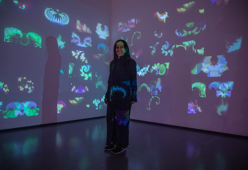 Tuvimos la oportunidad de hablar con la artista, Rejane Cantoni, quien exhibió la instalación de arte digital Floras. “Esta es una obra que está hecha con 50 videos, todos son NFT. Es como un cinema en tiempo real, que nunca se repite. Un jardín de luz y movimiento, arte algorítmico generativo. Es la vegetación y la flora brasilera, es la geometría de la naturaleza”, menciona.