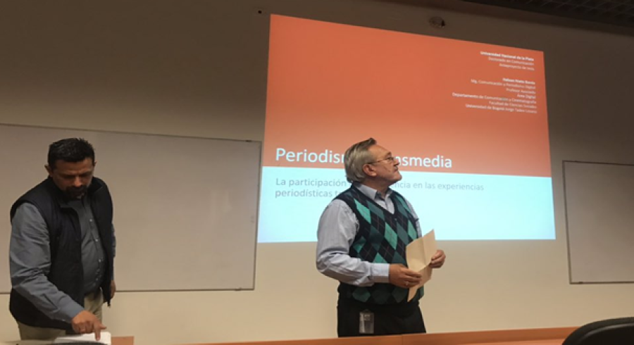 De otra parte, el profesor Nelson Nieto, del Programa de Comunicación Social, disertó sobre su proyecto de tesis doctoral, que tituló: "Periodismo transmedia, la participación de la audiencia en la experiencia periodística transmedia". El trabajo fue comentado, con lujo de detalles, por el reconocido periodista y profesor mexicano Octavio Islas, Doctor en Ciencias Sociales. El tema puntual del debate versó sobre la precisión del objeto de investigación, particularmente la relación y definición del periodismo transmedia y su audiencia; estudio de gran trascendencia en la comunicación de los medios contemporáneos.