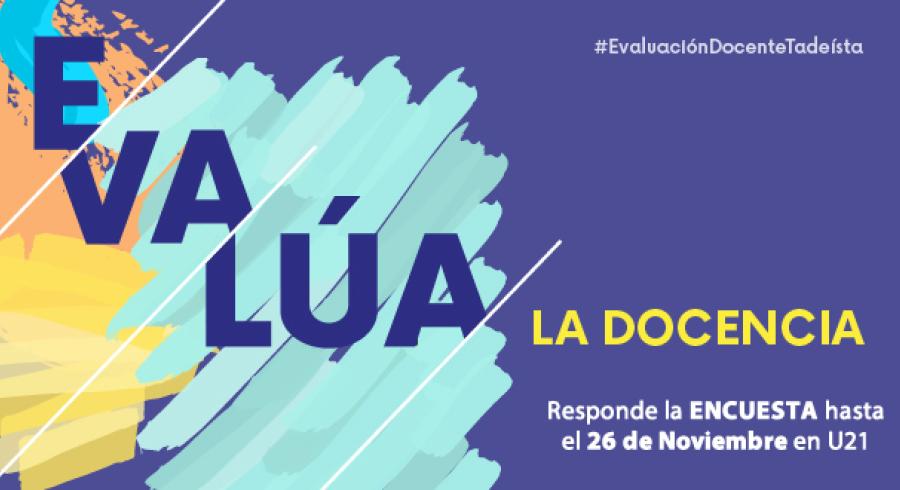 Como ya es habitual a final de cada semestre, llega nuevamente la evaluación docente, la cual es una retroalimentación sobre las prácticas pedagógicas en el aula, que nos permite identificar fortalezas y oportunidades de mejora. Los estudiante son quienes viven de forma directa estas prácticas y esta evaluación es una de las fuentes de información para reflexionar sobre la docencia. Desde el pasado 15 de octubre la Universidad puso a disposición de todos los estudiantes la Encuesta Evaluación de la Docencia 2019-2S, que estará abierta hasta el martes 26 de noviembre de 2019. Para responderla deben ingresar al Portal de Servicios en línea (U21 estudiantes) y desde allí responder la encuesta para cada asignatura y profesor.