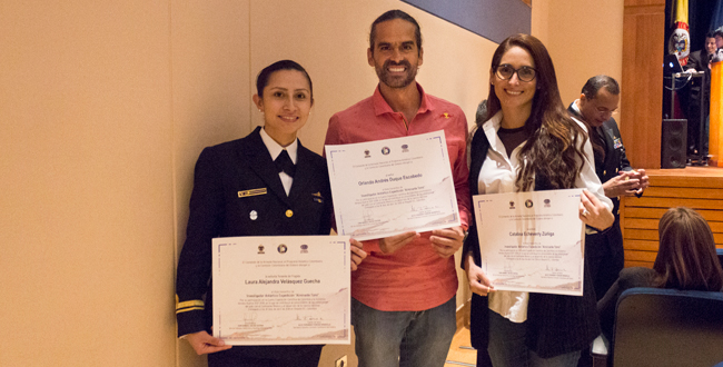 Como parte del seminario, la Armada Nacional entregó un reconocimiento a la tripulación de la cuarta Expedición de Colombia a la Antártida "Almirante Tono".