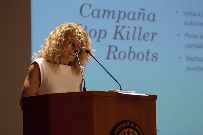 La frase la dijo como parte del Foro Stop Killer Robots, que se llevó a cabo en Utadeo el jueves 4 de abril y reunió a académicos de diferentes disciplinas, para discutir en torno a la postura que como país deberíamos tomar frente a este tipo de desarrollos tecnológicos.