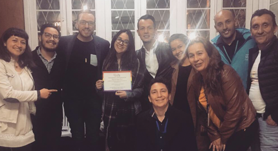 “Todo el salón decidió participar porque a estas convocatorias normalmente nadie se postula”, comenta Andrea. Cada uno de los estudiantes presentó una propuesta diferente y la ganadora fue Acuña. El reconocimiento fue entregado por Alejandro Mitchells, coordinador de la Mesa LGBT de Bogotá y como premio recibió un bono de consumo en el restaurante El Recreo de Adán.